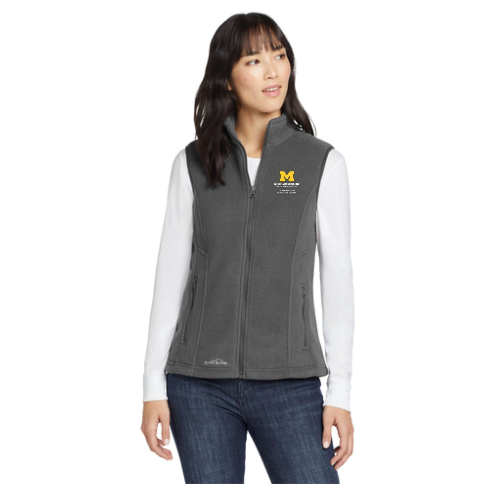 Ward off early morning chills by insulating your core with this soft, cozy vest. Princess seams, dyed-to-match reverse coil zippers, front zippered pockets with tricot lining, binding at armholes and an open hem. Embroidered Eddie Bauer contrast logo on right hem. The OTO logo is embroidered on the left chest.