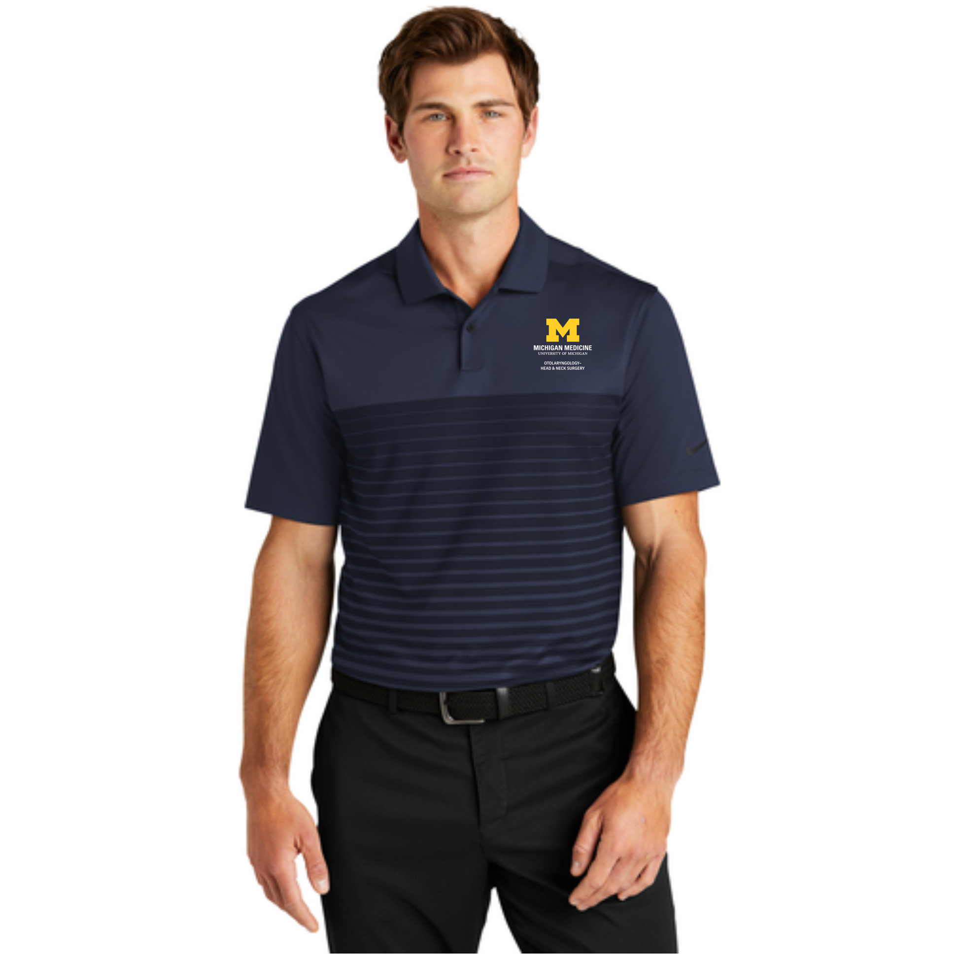 An engineered block print makes this polo stand out on the street or in the office. Designed for everyday wearability, it keeps you in your comfort zone with Dri-FIT moisture management technology. Features a self-fabric collar and two-button placket. Rolled-forward shoulder seams, open hem sleeves and open hem. A contrast heat transfer Swoosh logo is on the left sleeve. Made of 5.3-ounce, 87/13 polyester/spandex Dri-FIT fabric. The OTO logo is embroidered on the left chest.